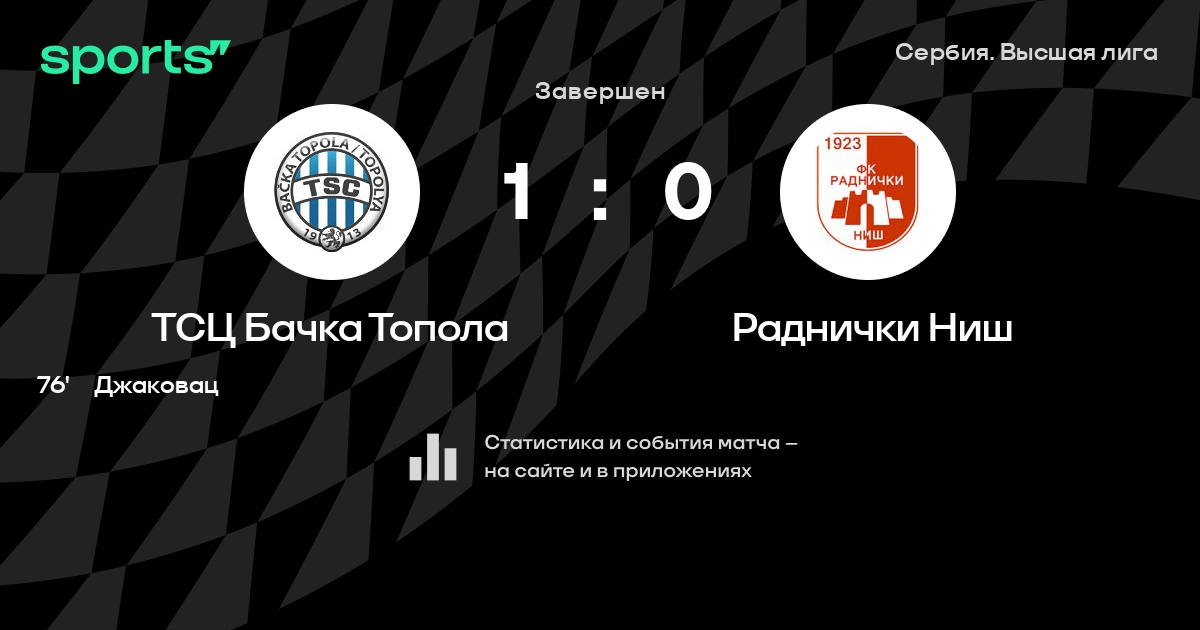 ТСЦ Бачка Топола – Раднички Ниш: ТСЦ Бачка Топола не пропускает в 3 последних матчах против этого соперника