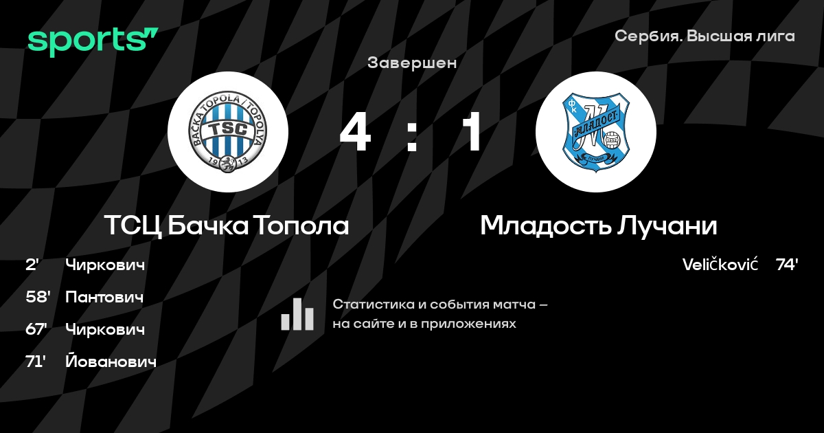 ТСЦ Бачка Топола – Младость Лучани: ТСЦ Бачка Топола забивает в 3 последних матчах против этого соперника