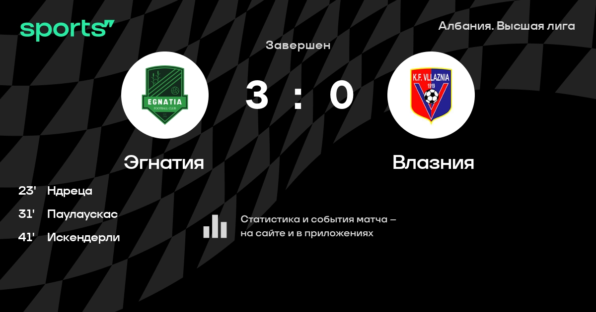 Эгнатия – Влазния: Эгнатия не пропускает в 3 последних матчах против этого соперника