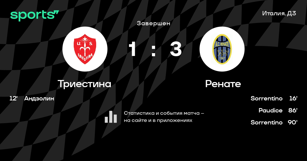 Триестина – Ренате: Ренате забивает в 5 из 7 последних матчей против этого соперника