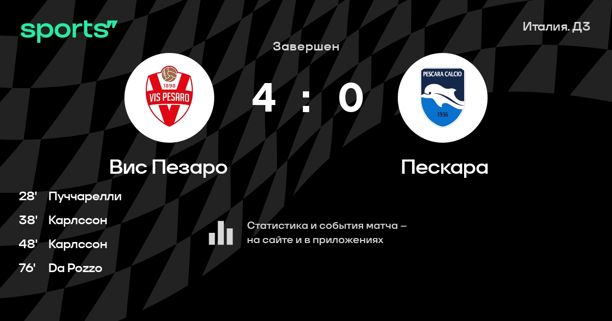 Вис Пезаро – Пескара: Пескара не пропускает в 3 последних матчах против этого соперника