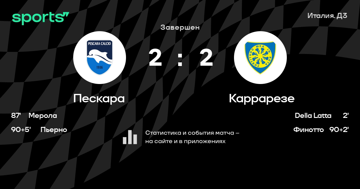 Пескара – Каррарезе: Каррарезе забивает в 4 последних матчах против этого соперника