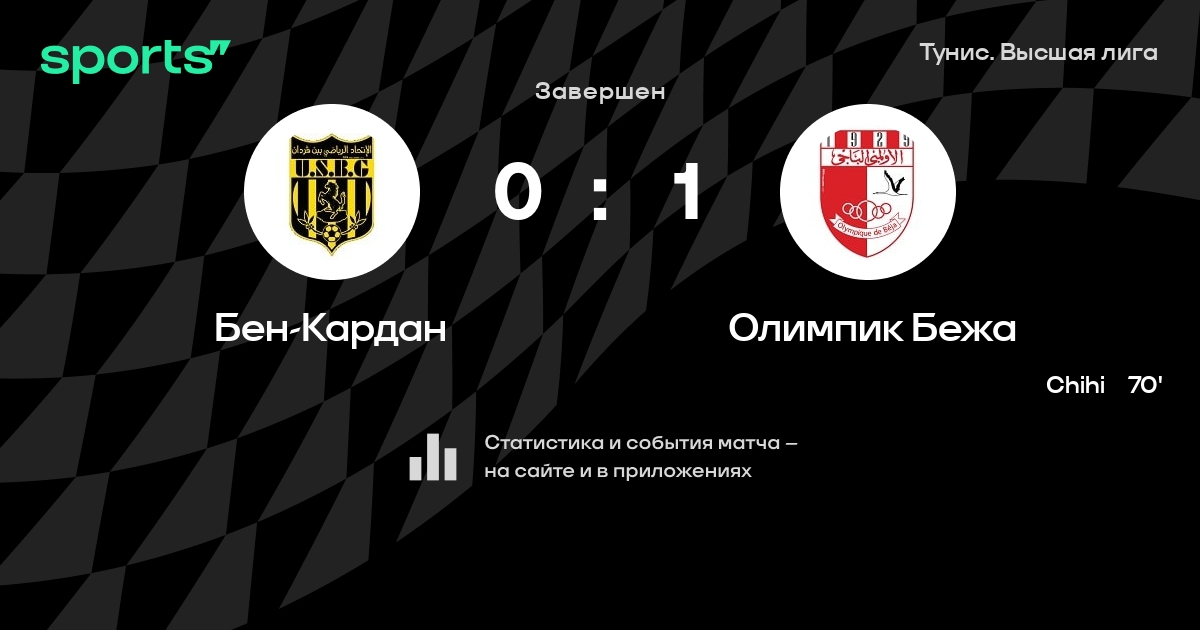 Бен-Кардан – Олимпик Бежа: Бен-Кардан не проигрывает в 6 последних матчах против этого соперника