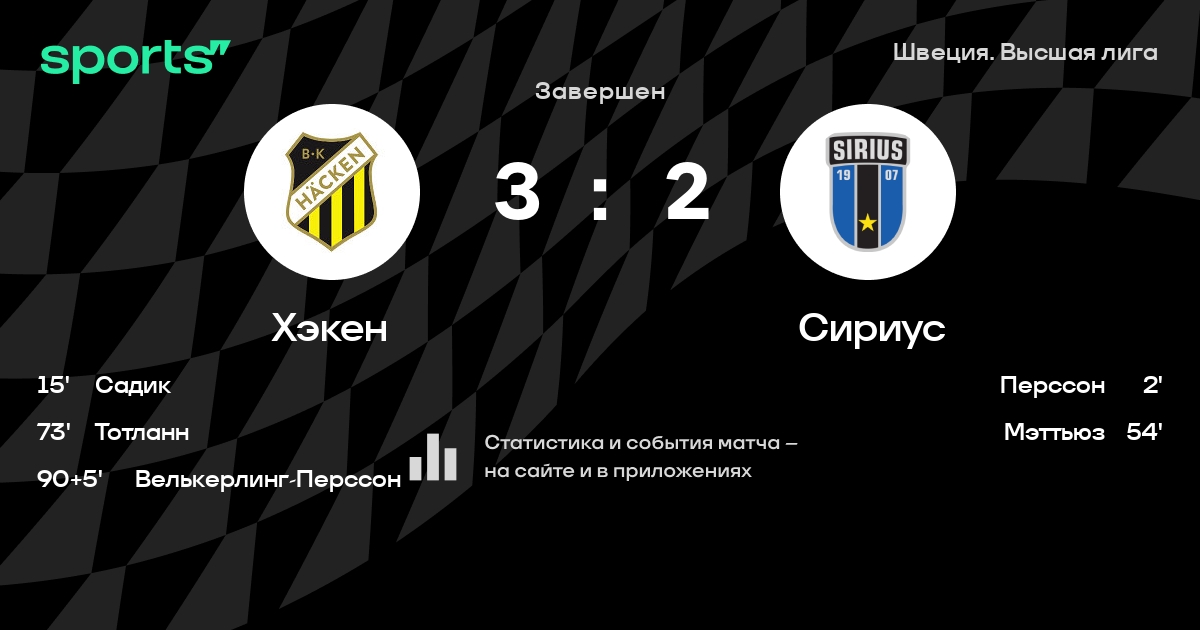 Хэкен – Сириус: Хэкен побеждает в 3 последних очных матчах