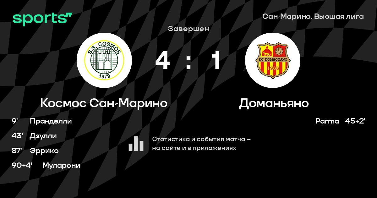 Космос Сан-Марино – Доманьяно: Космос Сан-Марино не проигрывает в 5 из 7 последних матчей против этого соперника