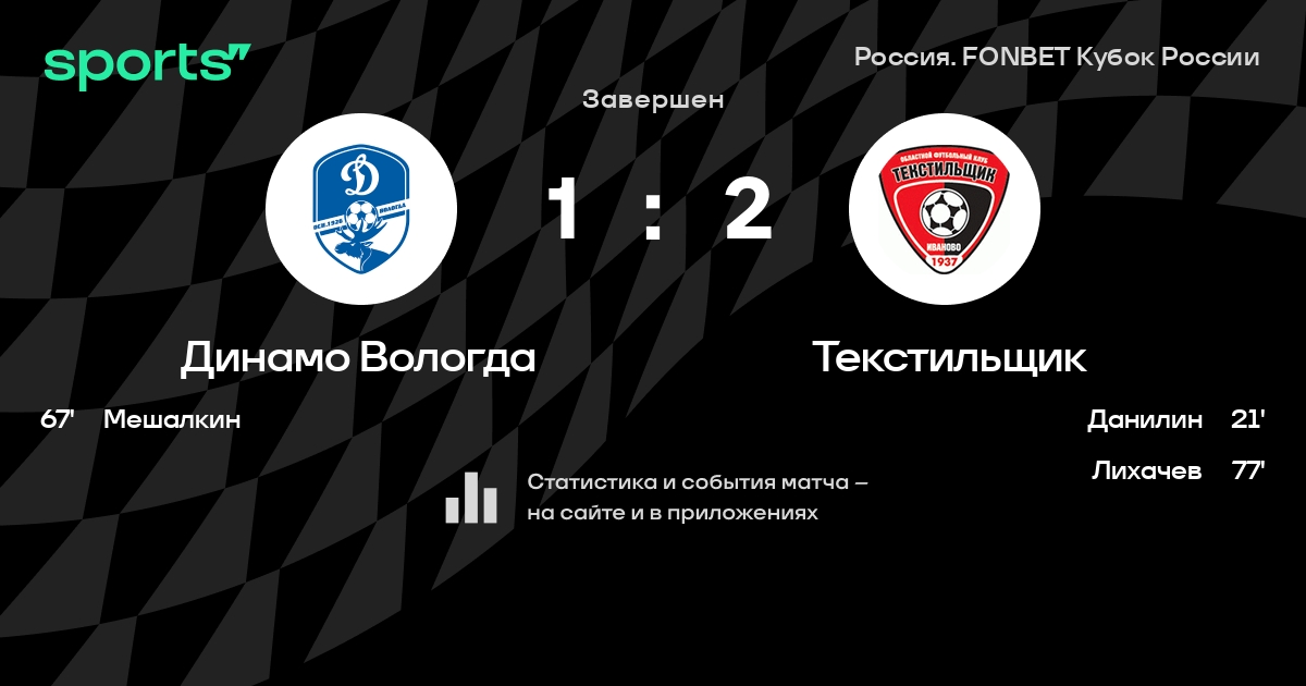 Динамо Вологда – Текстильщик: Текстильщик забивает в 4 последних матчах против этого соперника