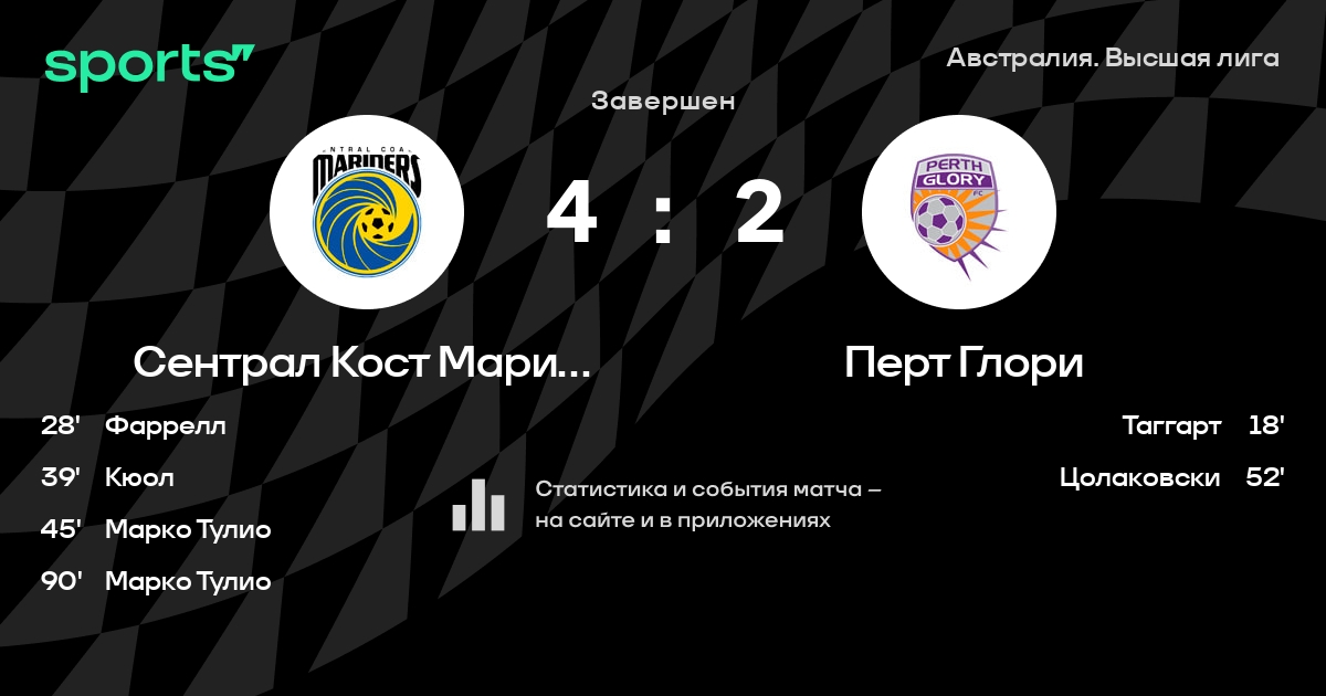 Сентрал Кост Маринерс – Перт Глори: Перт Глори не проигрывает в 6 последних матчах против этого соперника
