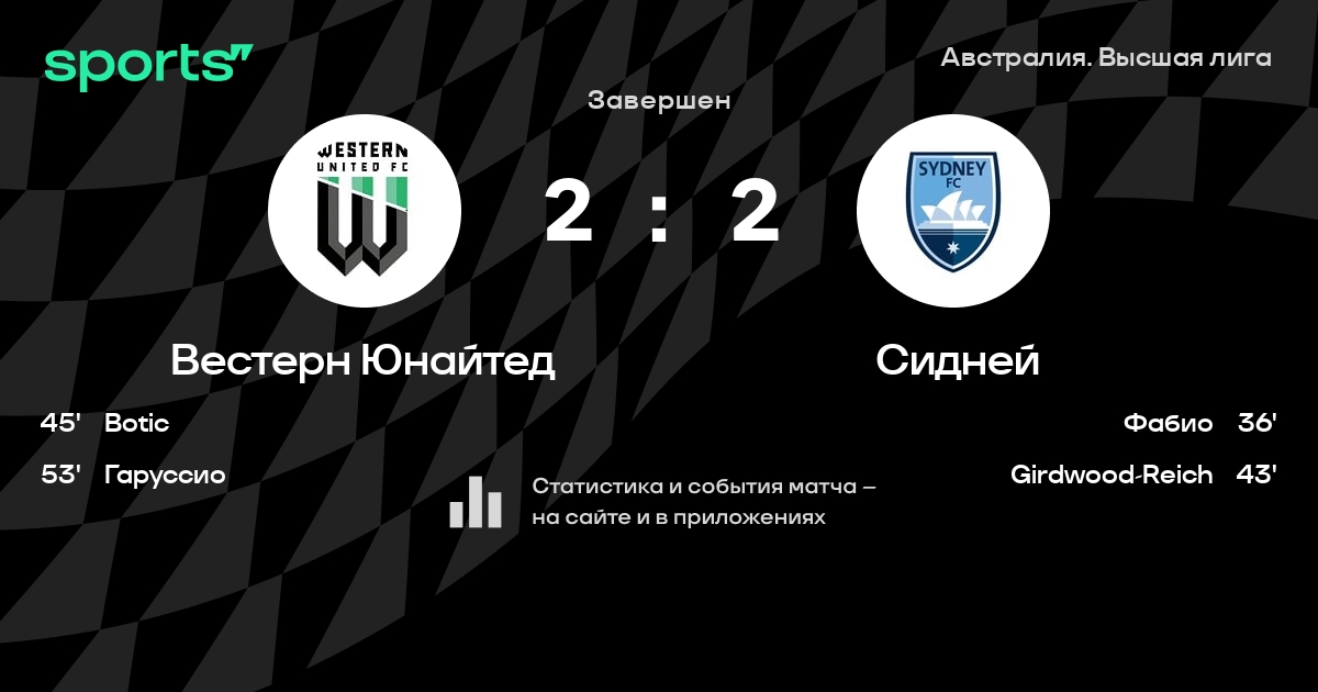 Вестерн Юнайтед – Сидней: Сидней не проигрывает в 7 из 9 последних матчей против этого соперника