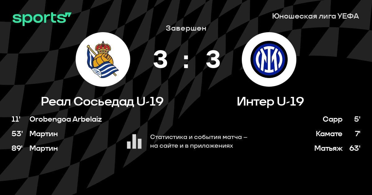 Реал Сосьедад U-19 - Интер U-19: положение в турнире