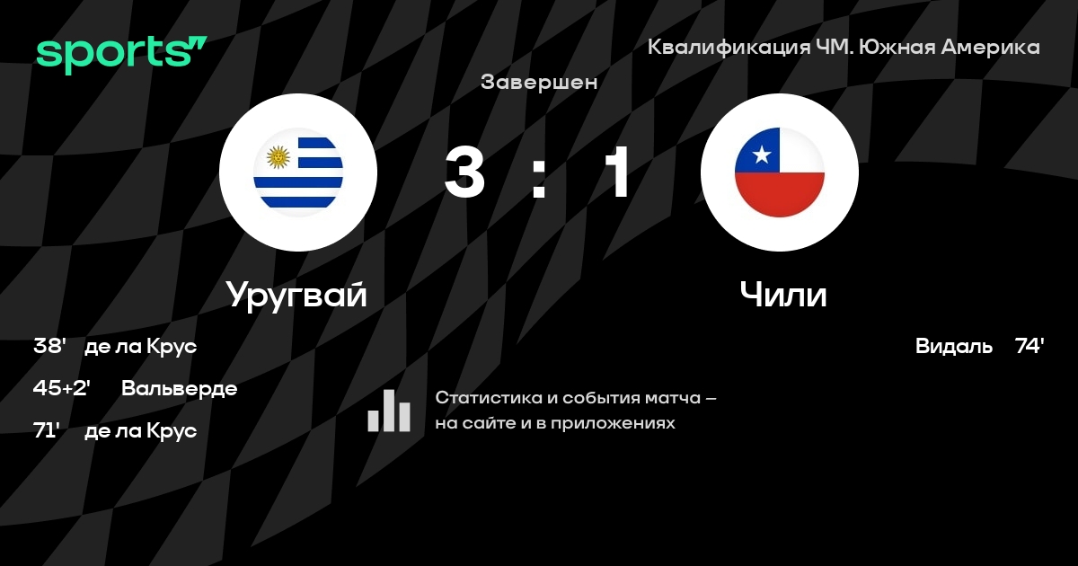 Уругвай – Чили: Уругвай не проигрывает в 5 из 7 последних матчей против этого соперника