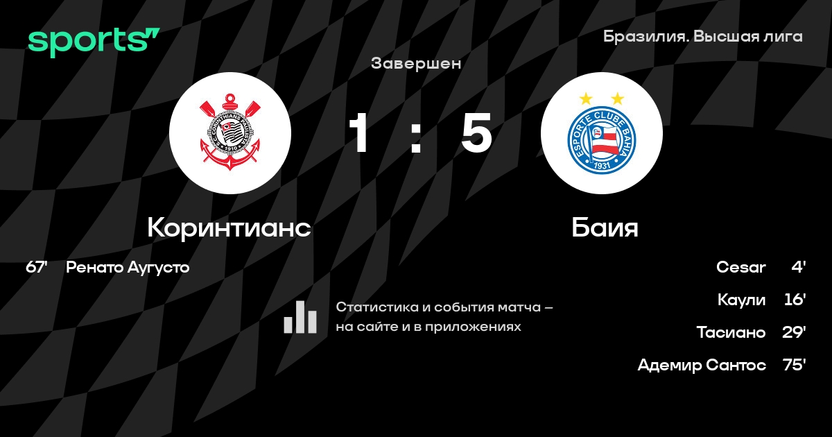 Коринтианс – Баия: Коринтианс не проигрывает в 5 из 7 последних матчей против этого соперника
