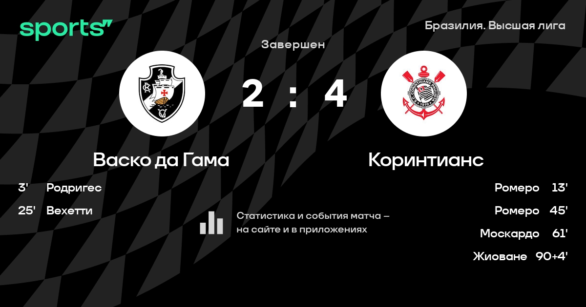 Васко да Гама – Коринтианс: Коринтианс забивает в 10 из 12 последних матчей против этого соперника
