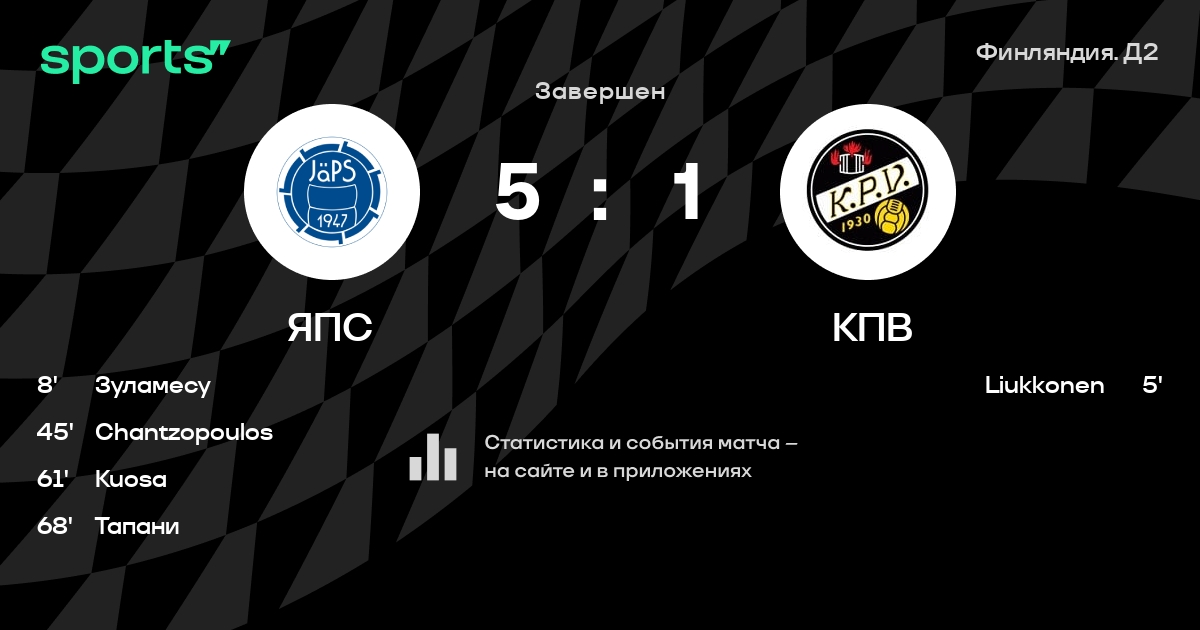 Laiho - Autio, Зуламесу, Ramström, Tobias Karkulowski - Тапани, Яма, Kuosa, Köse - Hugo Toivonen, БанзаЗапасные: Челльман, Arminen, Мериляйнен, Хейдари, Mokuma, Holopainen, Тамминен