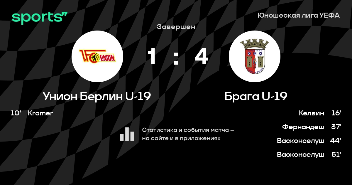 Трансляция Унион Берлин U-19 - Брага U-19