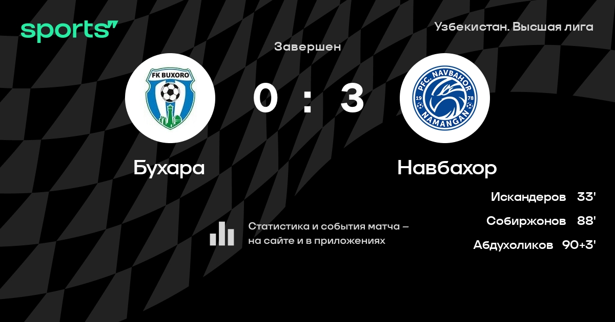 Бухара – Навбахор: Навбахор не пропускает в 4 последних матчах против этого соперника