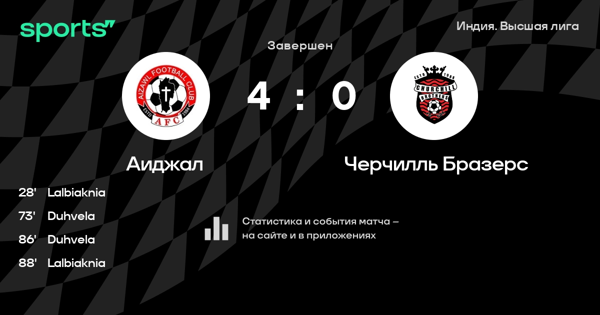 Аиджал – Черчилль Бразерс: Черчилль Бразерс не проигрывает в 6 последних матчах против этого соперника