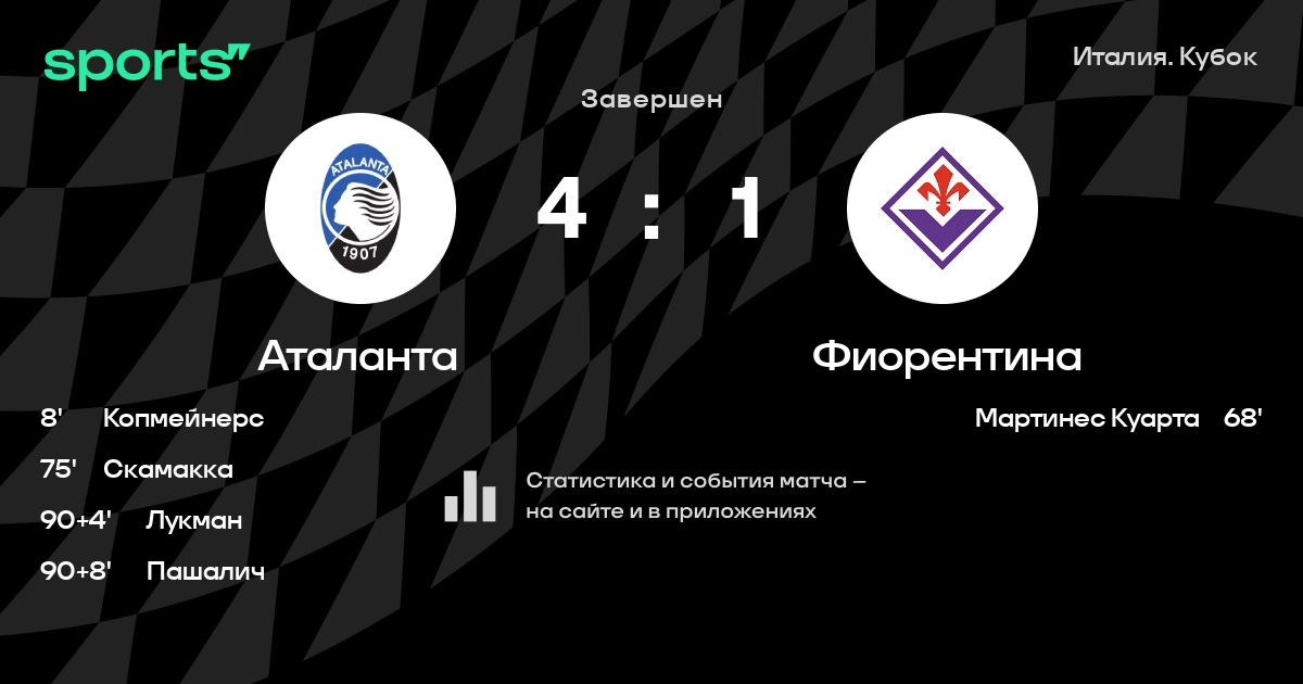 «Аталанта» вышла в финал Кубка Италии, разгромив «Фиорентину» – 4:1