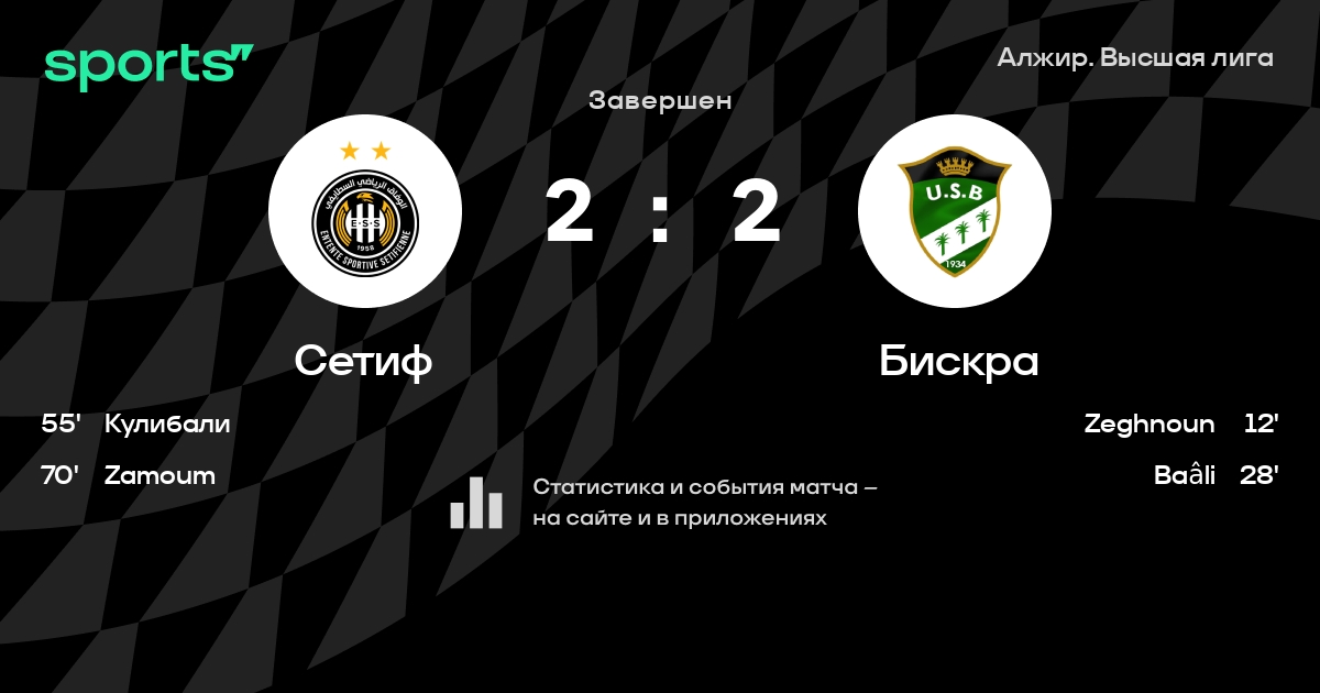 Сетиф – Бискра: Сетиф забивает в 5 последних матчах против этого соперника