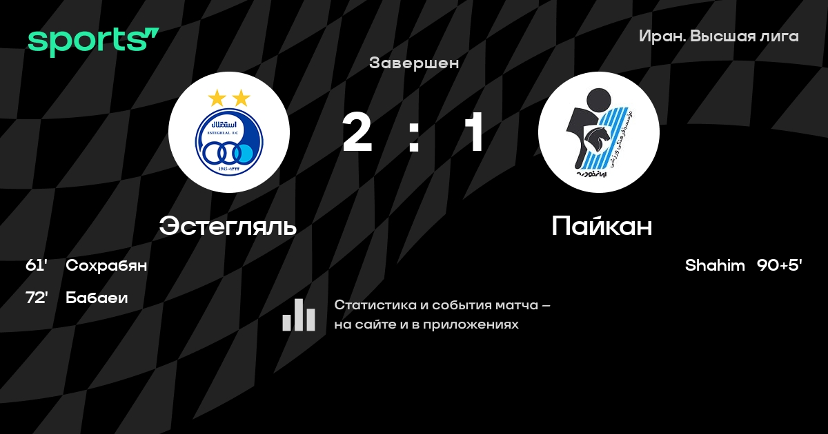 Эстегляль – Пайкан: Эстегляль не пропускает в 6 последних матчах против этого соперника