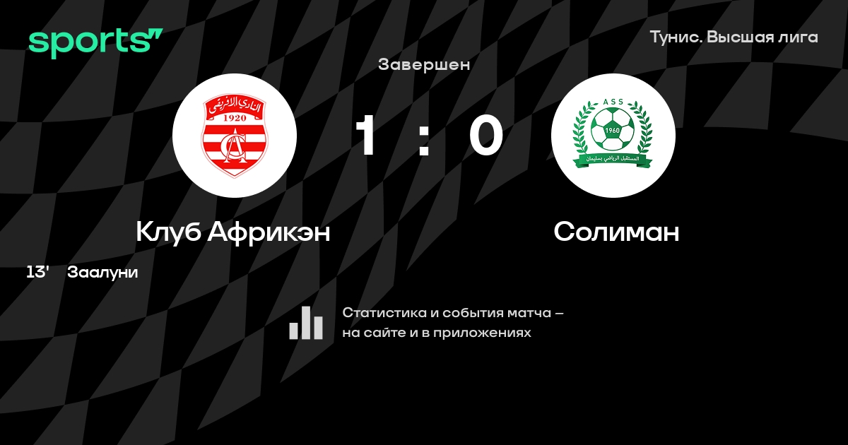 Клуб Африкэн – Солиман: Клуб Африкэн побеждает в 3 последних очных матчах