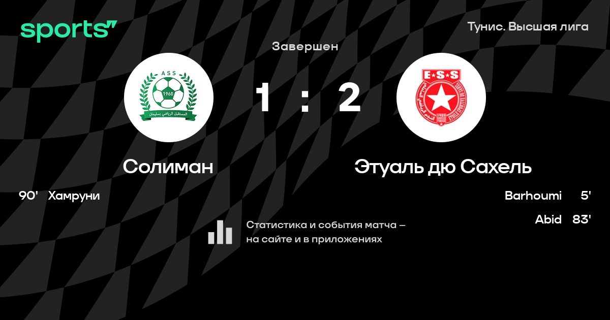 Солиман – Этуаль дю Сахель: Этуаль дю Сахель не пропускает в 5 последних матчах против этого соперника