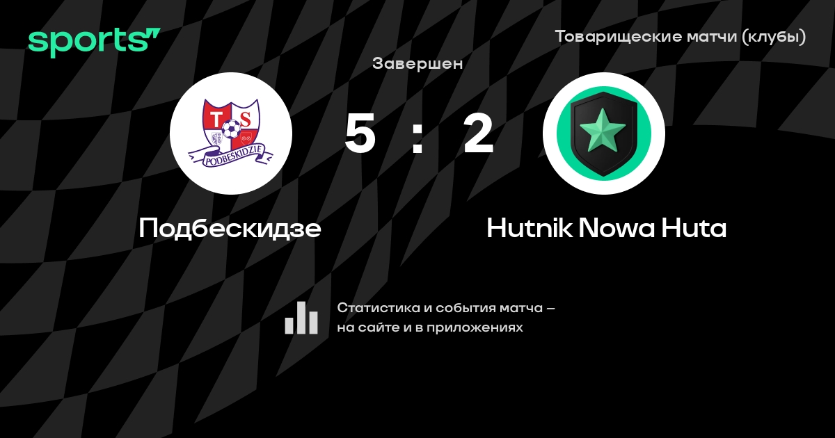 Hutnik Kraków не выигрывает в 5 последних матчах в турнире «Товарищеские матчи (клубы)»
