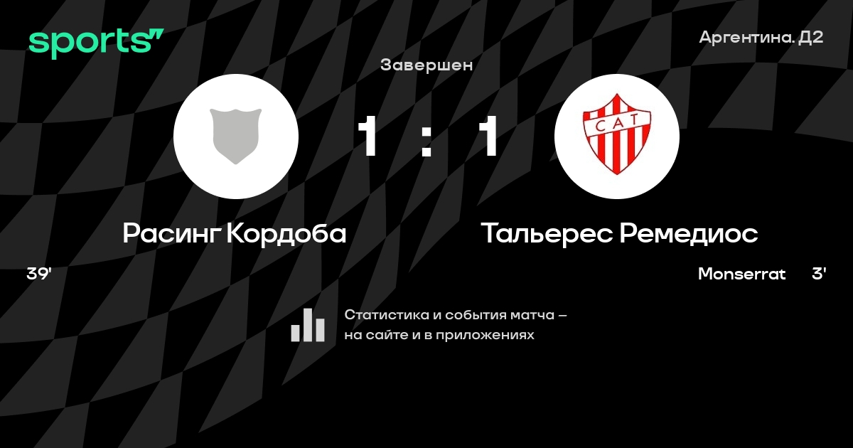 Трансляция Расинг Кордоба - Тальерес Ремедиос