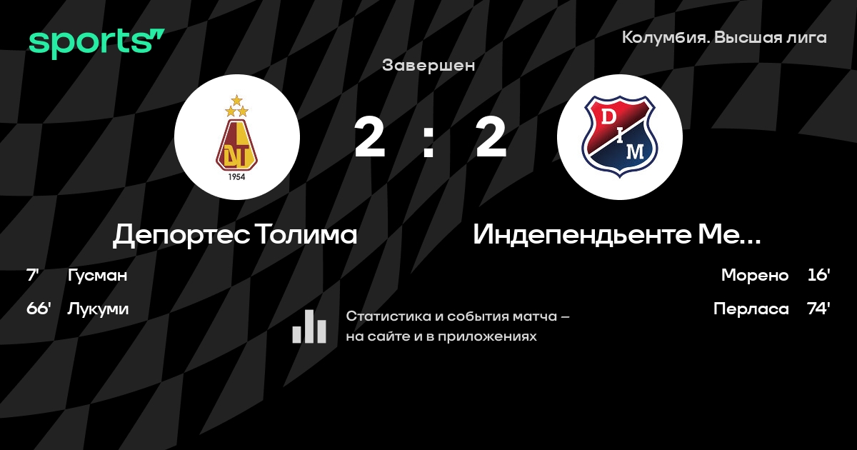 Депортес Толима – Индепендьенте Медельин: Индепендьенте Медельин не проигрывает в 5 из 7 последних матчей против этого соперника
