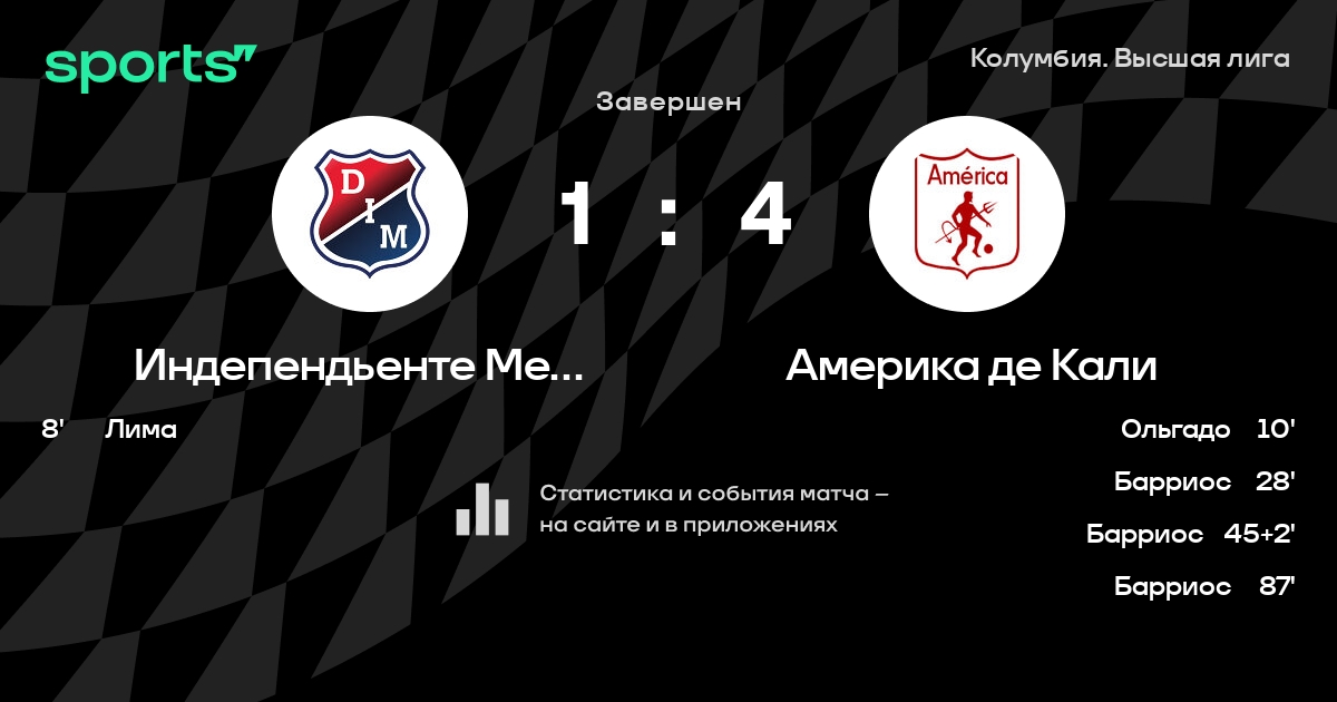 Индепендьенте Медельин – Америка де Кали: Индепендьенте Медельин побеждает в 3 последних очных матчах