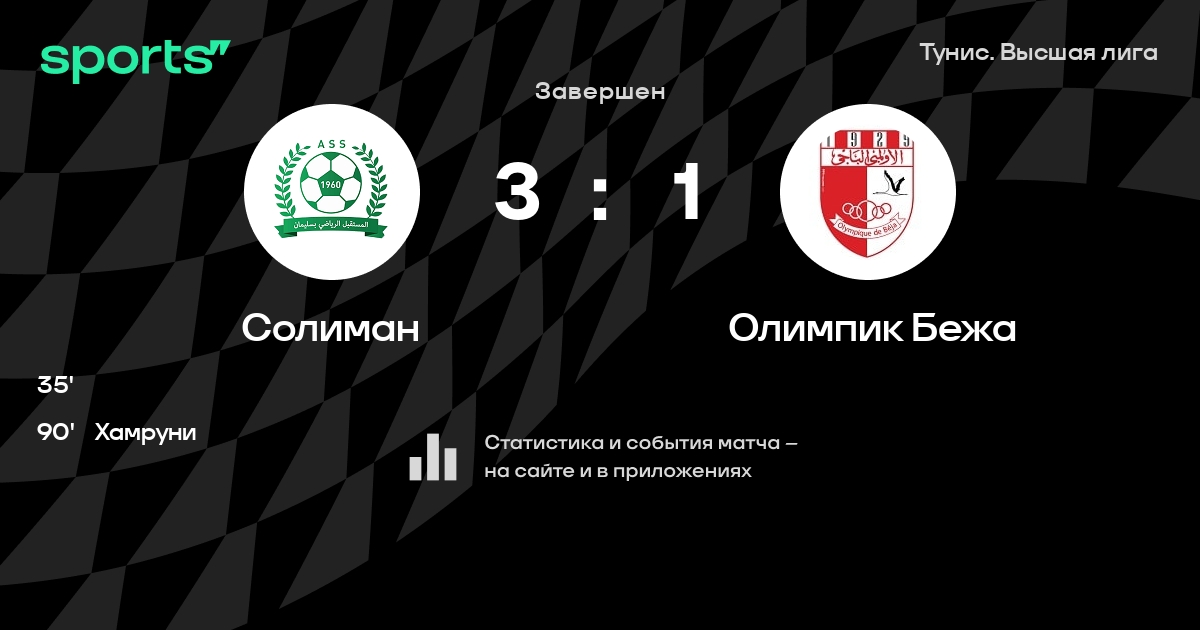 Солиман – Олимпик Бежа: Солиман не проигрывает в 5 из 6 последних матчей против этого соперника дома