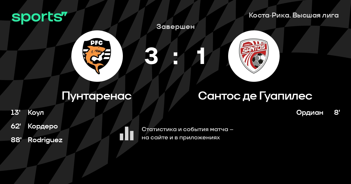Пунтаренас – Сантос де Гуапилес: Сантос де Гуапилес не проигрывает в 6 из 8 последних матчей против этого соперника