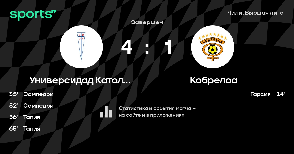 Универсидад Католика – Кобрелоа: Универсидад Католика побеждает в 11 последних очных матчах дома в турнире «Примера»