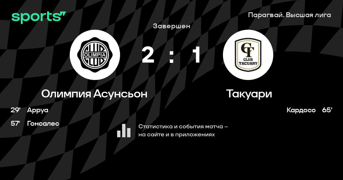 Олимпия Асунсьон – Такуари: Олимпия Асунсьон не пропускает в 2 из 7 последних матчей против этого соперника