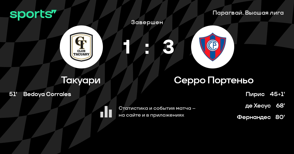 Такуари – Серро Портеньо: Серро Портеньо забивает в 7 из 9 последних матчей против этого соперника
