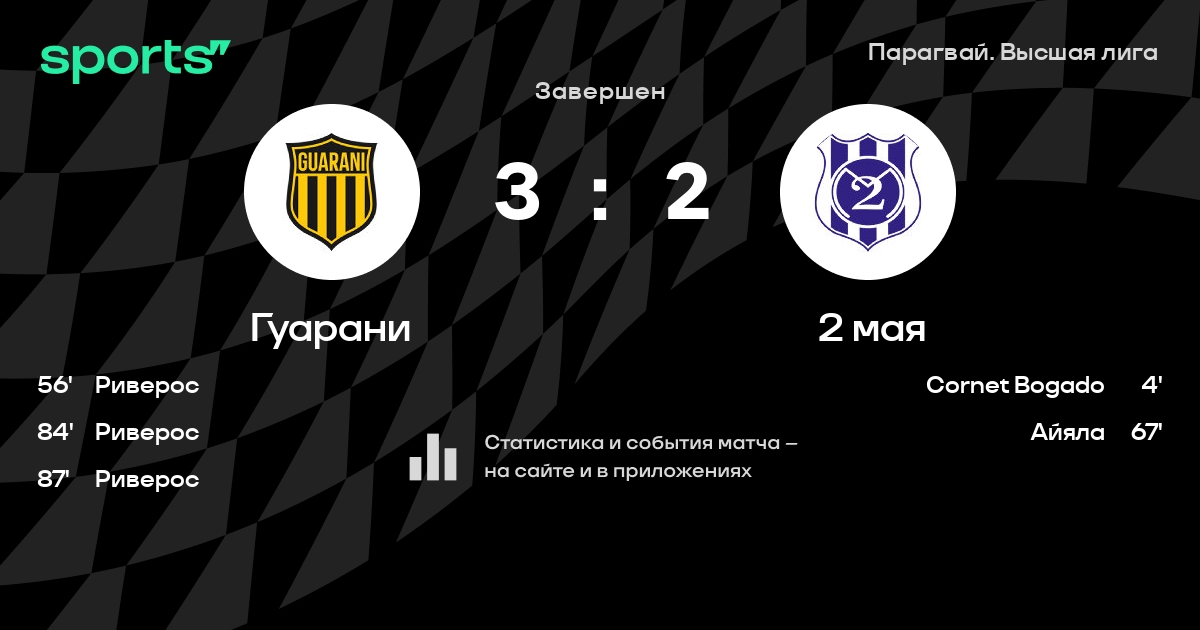 Гуарани – 2 мая: Гуарани забивает в 6 последних матчах против этого соперника