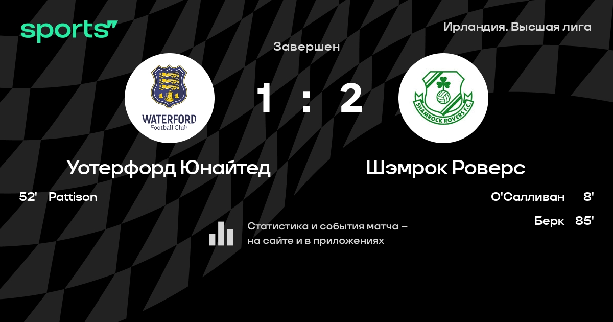 Уотерфорд Юнайтед – Шэмрок Роверс: Шэмрок Роверс не проигрывает в 15 из 17 последних матчей против этого соперника