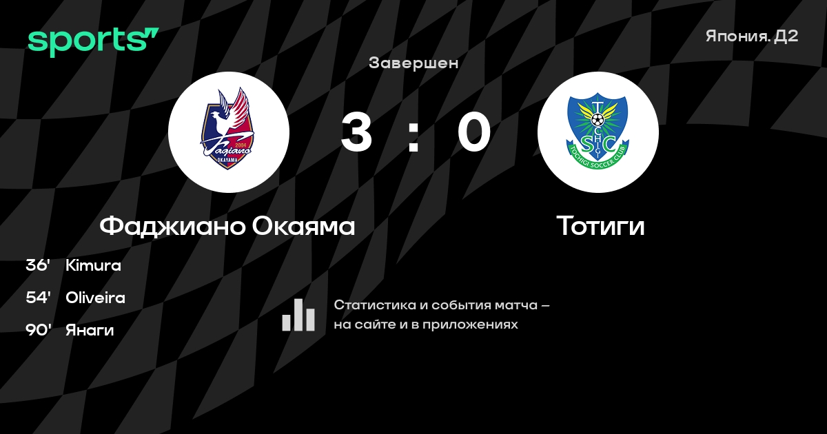 Фаджиано Окаяма – Тотиги: Тотиги не проигрывает в 5 из 7 последних матчей против этого соперника