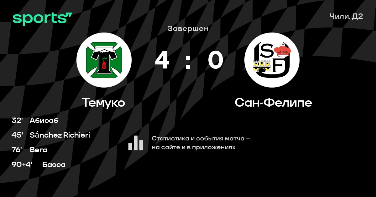 Урра - Agustín Alfonso Peñailillo Concha, Valenzuela Pérez - Sobarzo, Гонсалес, Нуньес, Гонсалес, Абисаб - Castro Gutiérrez, Sánchez Richieri, ЭспиносаЗапасные: Garrido Parra, Баэса, Neculhueque Germain, Меливилу, Cortés Aguirre, Bustamante Gamboa, Вега