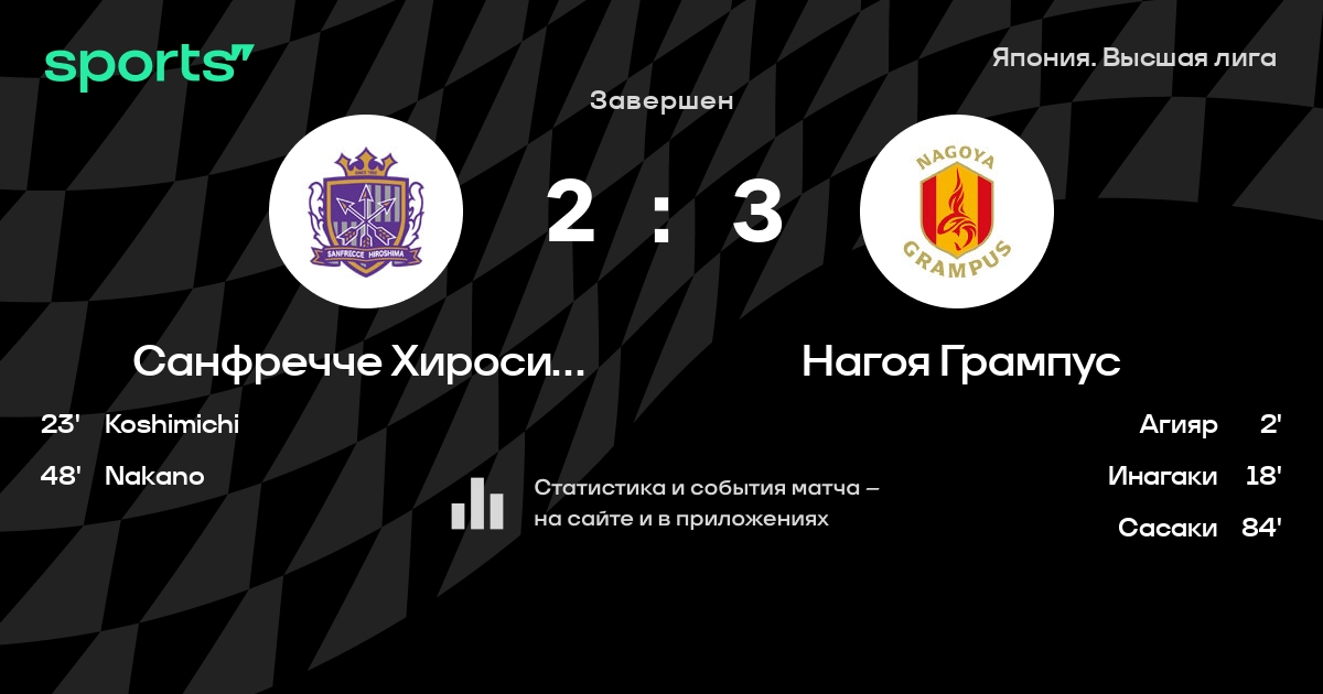 Санфречче Хиросима – Нагоя Грампус: Нагоя Грампус забивает в 4 последних матчах против этого соперника