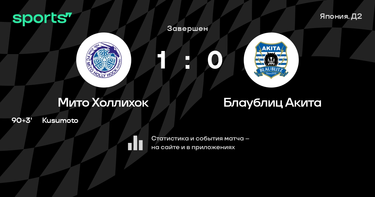 Мито Холлихок – AFC Blaublitz Akita: AFC Blaublitz Akita не проигрывает в 7 последних матчах против этого соперника