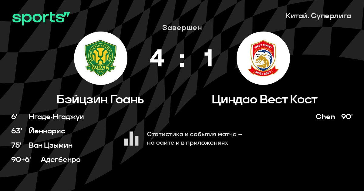 Бэйцзин Гоань не проигрывает в 6 из 8 последних матчей