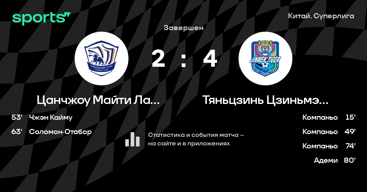Цанчжоу Майти Лайонс – Тяньцзинь Цзиньмэнь Тайгер: Тяньцзинь Цзиньмэнь Тайгер забивает в 7 последних матчах против этого соперника