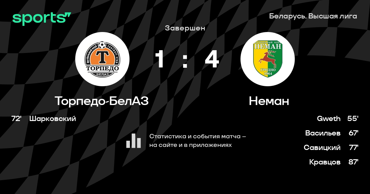 Торпедо-БелАЗ – Неман: Неман не проигрывает в 11 последних матчах против этого соперника