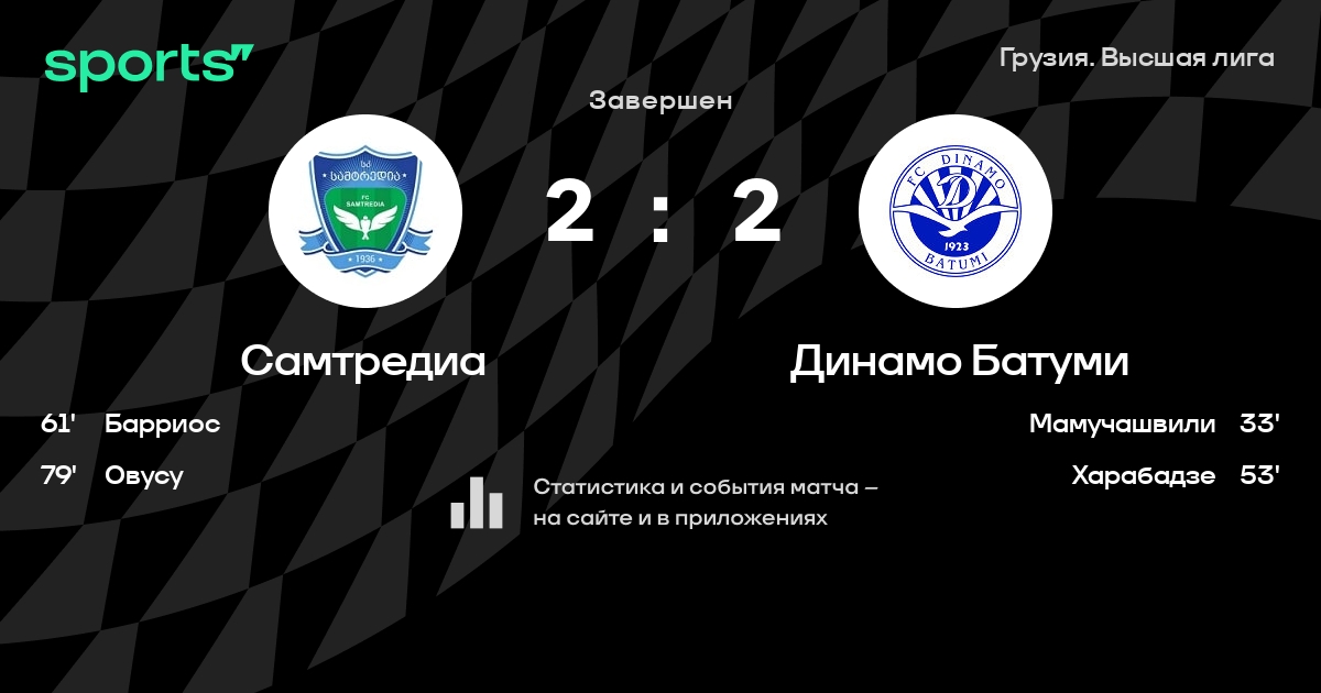 Самтредиа – Динамо Батуми: Динамо Батуми забивает в 4 последних матчах против этого соперника