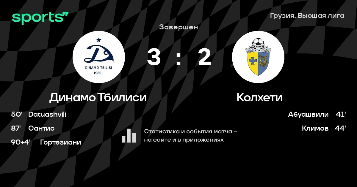 Результат прошлой игры в турнире «Высшая лига»: Колхети – Сабуртало 2:6. После 25 туров Колхети набирает 28 очков и занимает 7 место в турнире. Лучший бомбардир команды – Георгий Абуашвили: он забил 10 в 25 матчах. Колхети не может выиграть в 4 последних матчах в рамках турнира «Высшая лига». В последних 5 играх Колхети забивает 4 голов. В последних 5 играх Колхети пропускает 12 голов.
