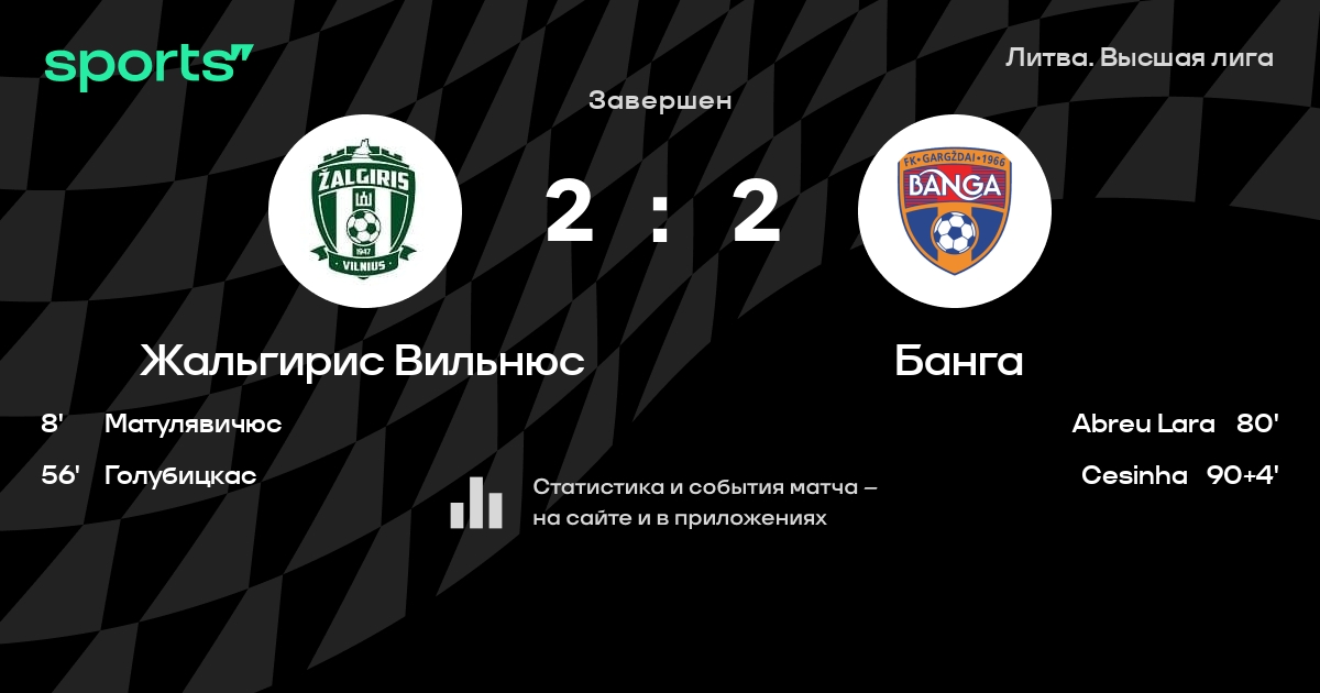Жальгирис Вильнюс – Банга: Жальгирис Вильнюс побеждает в 17 последних очных матчах