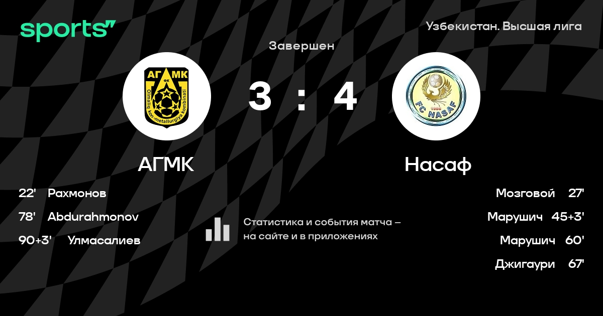 АГМК – Насаф: Насаф забивает в 4 последних матчах против этого соперника