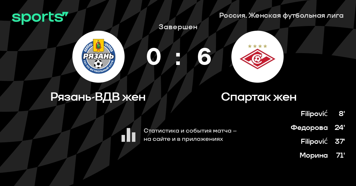 | 1 | Зенит жен | 24 | 22 | 2 | 0 | 65 | 8 | +57 | 68 | ||