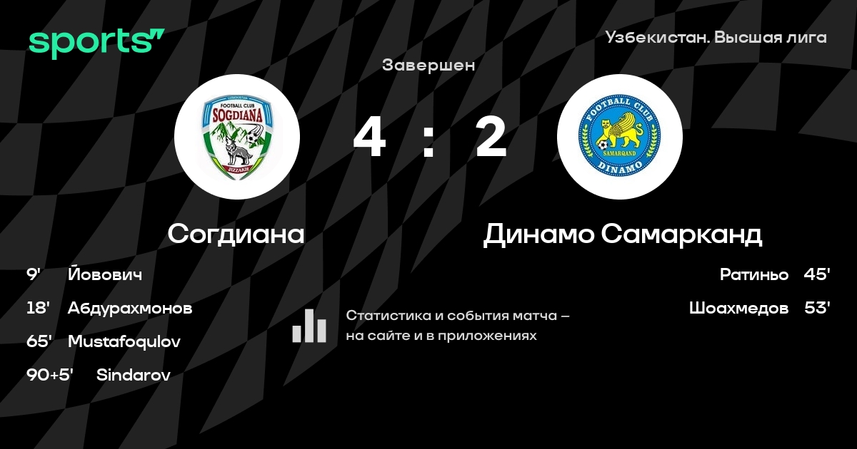 Согдиана – Динамо Самарканд: коэффициенты