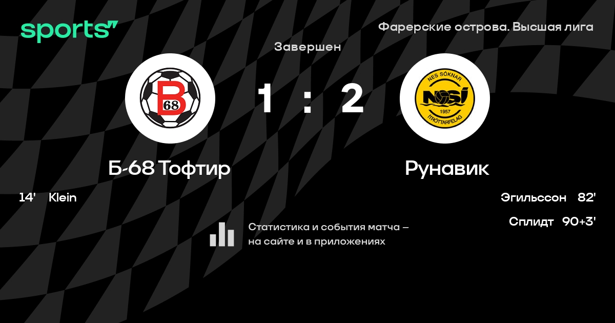 Б-68 Тофтир – Рунавик: Рунавик забивает в 3 последних матчах против этого соперника